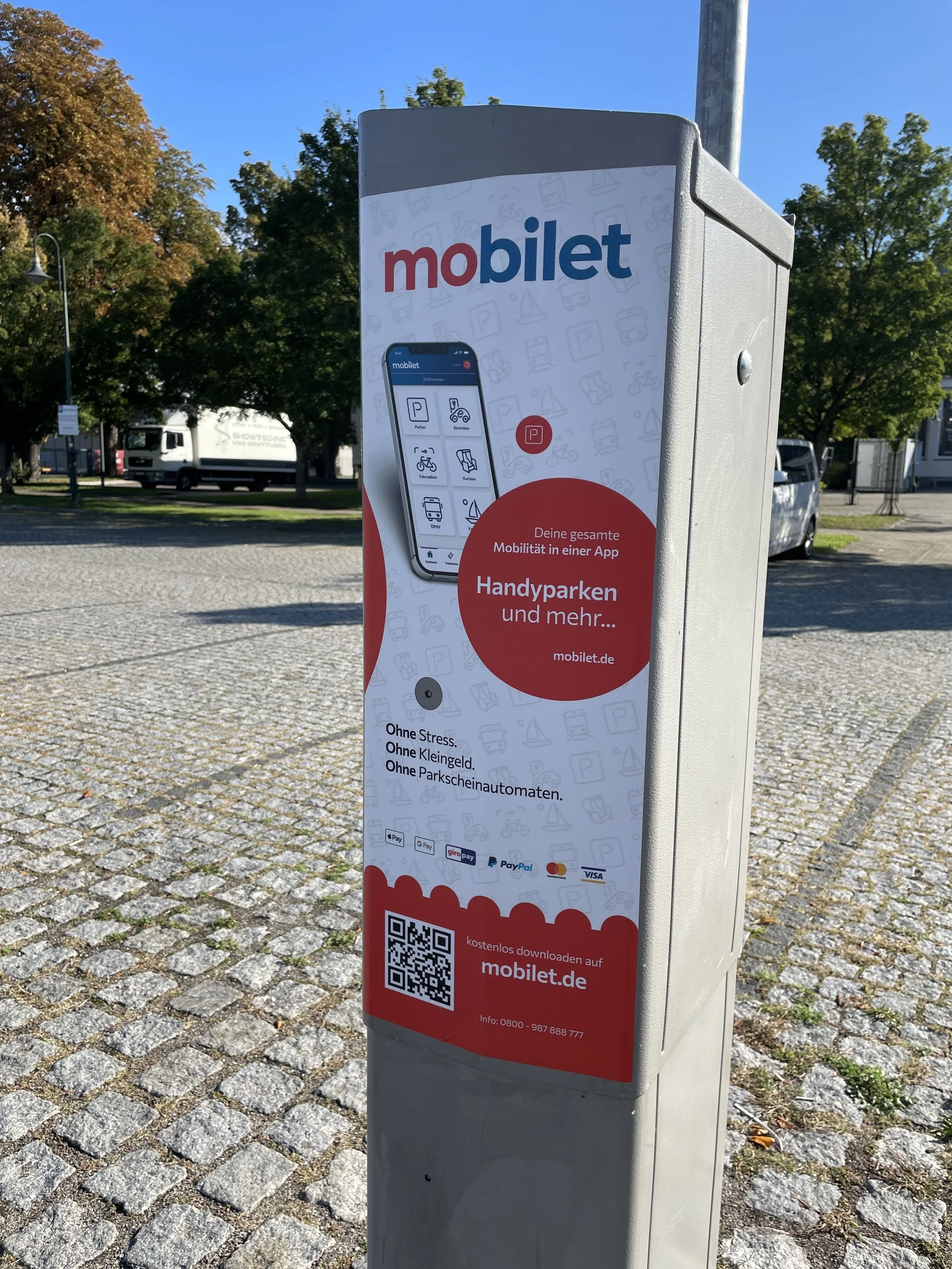 Es gibt 2 Parkschein Automaten. Alternativ können Sie mit der APP Mobilet auch online buchen.