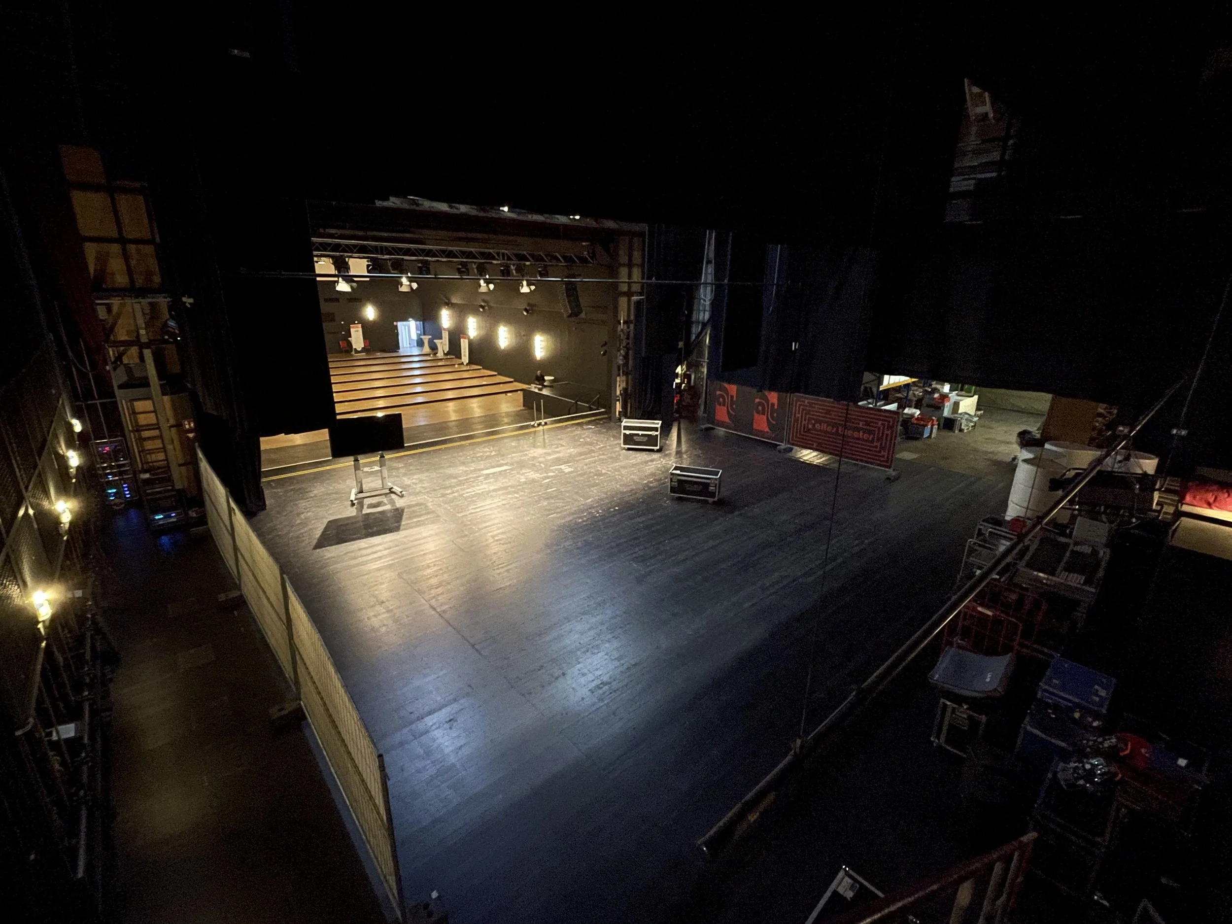 Begehbarer Schnürboden über der Bühne in einer Höhe von 14 Metern
